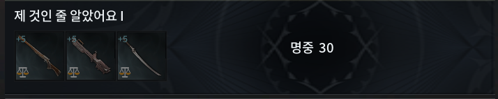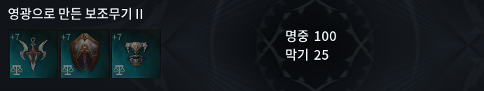 9) 영광으로 만든 보조무기 2 : 명중 100 / 막기 25