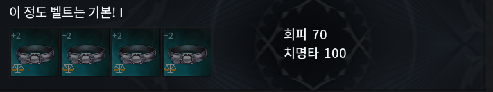 1) 이 정도 벨트는 기본 1 : 회피 70 / 치명타 100