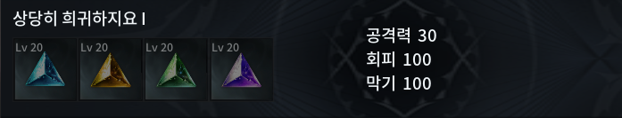 1) 상당히 희귀하지요 1 : 공격력 30 / 회피 100 / 막기 100