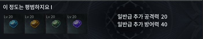 1) 이 정도는 평범하지요 1 : 일반급 추가 공격력 20 / 일반급 추가 방어력 40