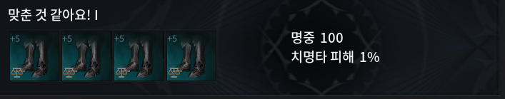 2) 맞춘 것 같아요 1 : 명중 100 / 치명타피해 1%