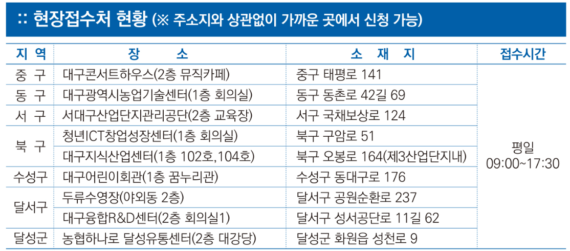 - 현장접수 : 두류수영장 등 9곳 접수 창구